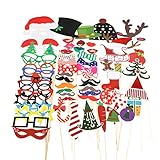 #8: TinkSky 62-Piece Christmas Photo Booth Props and Accessories DIY Favor Including Christmas Tree Glasses Santa's Reindeer Hats Snowflake Gift Bell Stocking Gingerbread Man and More Xmas Character Props