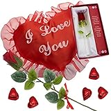 #10: Prextex Valentine's Gift Set includes I love you big red heart pillow, red scented rose, chocolates, and glass valentine's rose