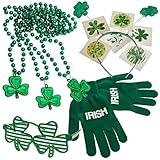 #10: St. Patrick's Day Dress up Set: Shamrock Beads Necklace's, Tattoos, Shamrock Shutter Glasses, Head Bopper, & Acrylic Irish Print Gloves
