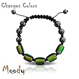 #10: Moody Mood Bracelet Changes Colors with Your Mood Adjustable Beaded Fashion Jewelry (Black) in Drawstring Bag