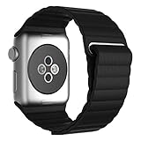 #8: Apple Watch Band,42mm Genuine Leather Loop with Magnet Lock Strap Replacement Band for Apple Watch 42mm All Models No Buckle Needed - Black