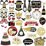 #9: New Years Photo Booth Props, Glitter Photo Booth Props for Eve Party Supplies Decorations – 39 PCS