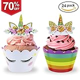 #5: Unicorn Cupcake Toppers and Wrappers, U-Tote Unicorn Party Supplies Double Sided Birthday Cake Decorations for Kids Party (Set of 24)