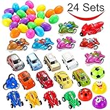 #7: 24 PCs Filled Easter Eggs with Toy Cars, 2.25” Bright Colorful Surprise Eggs Prefilled with Various Pull Back Vehicles and Friction Vehicles for Easter Basket Stuffers, Egg Hunt Party by Joyin Toy