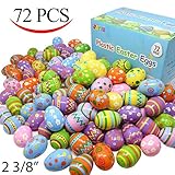 #8: Joyin Toy 72 Pcs Plastic Printed Bright Easter Eggs 2 3/8” Tall for Easter Hunt, Basket Stuffers Fillers, Classroom Prize Supplies, Filling Treats and Party Favor