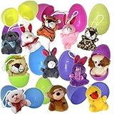 #9: Joyin Toy 12 Pack Prefilled Easter Eggs of Mini Stuffed Animal Plush Toys Easter Baster Stuffer for Kids Easter Egg Hunt Filler Stuffer