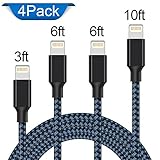 #4: Lightning Cable,ONSON Charger Cables 4Pack 3FT 2x6FT 10FT to USB Syncing Data and Nylon Braided Cord Charger for iPhone X/8/8 Plus/7/7 Plus/6/6 Plus/6s/6s Plus/5/5s/5c/SE and more-Black&Blue