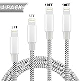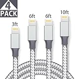 #10: Besiva Lightning Cable iPhone Charger 4Pack 3FT 6FT 10FT 10FT Nylon Braided 8 Pin Lightning to USB Charger for iPhone X iPhone 8 8 Plus 7 7 Plus 6s 6s Plus 6 6 Plus iPad iPod Nano