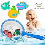 #4: Markkeer Baby Bath Toy Set,Squirts Bath Toys with Water Scoop,Pool Floating Bath Toys Make Sound & Spray Water for Kids Toddler Baby Boys Girls(6 Pack)